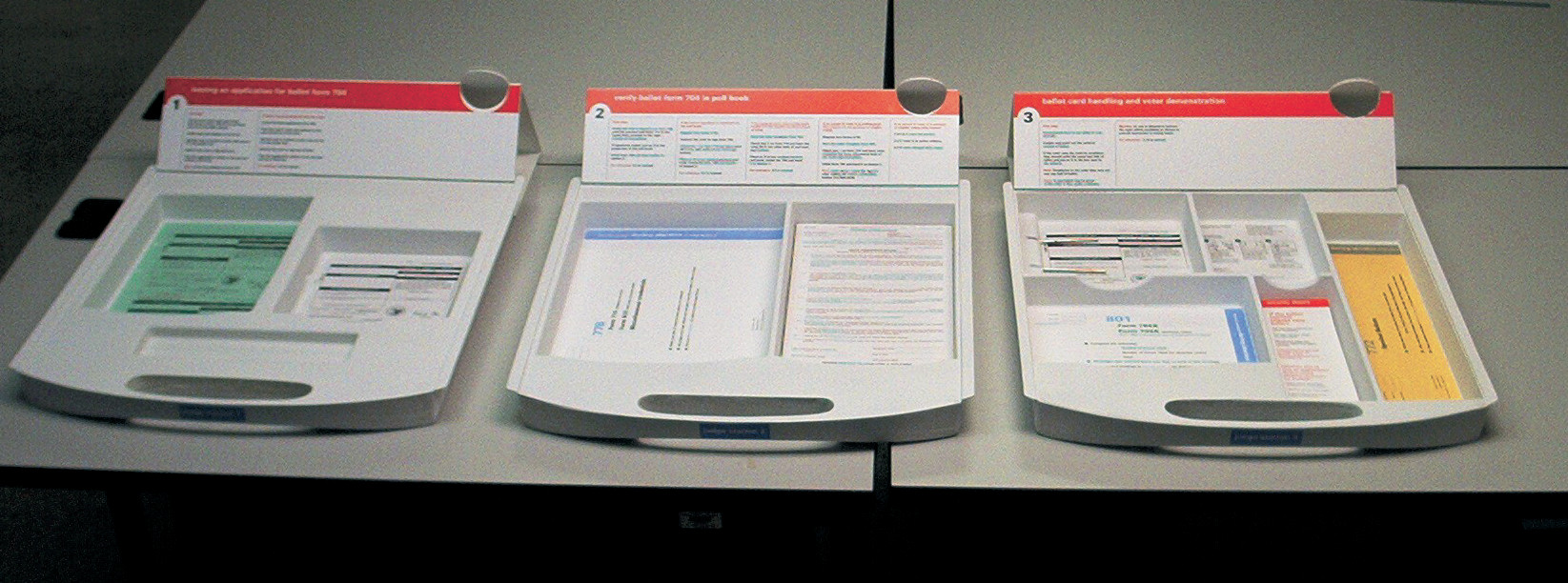 Voter experience system in Cook County, Illinois. Photo courtesy of University of Illinois at Chicago, AIGA Design for Democracy, Chicago, Illinois, 2002.